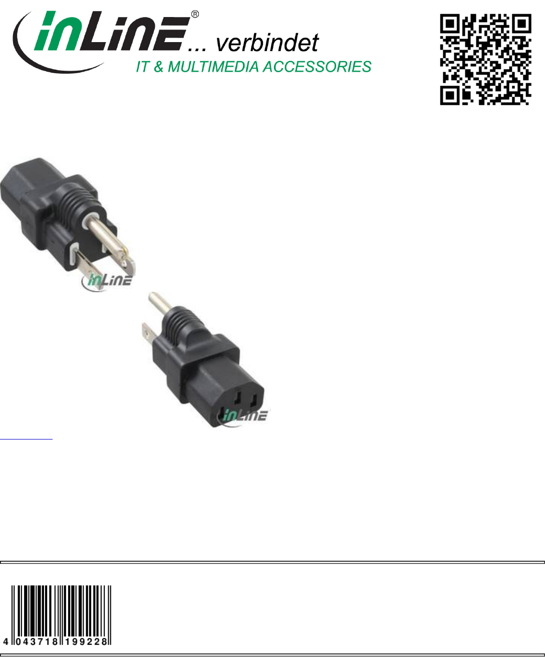 InLine® Power adapter, USA male plug to IEC C13 plug
