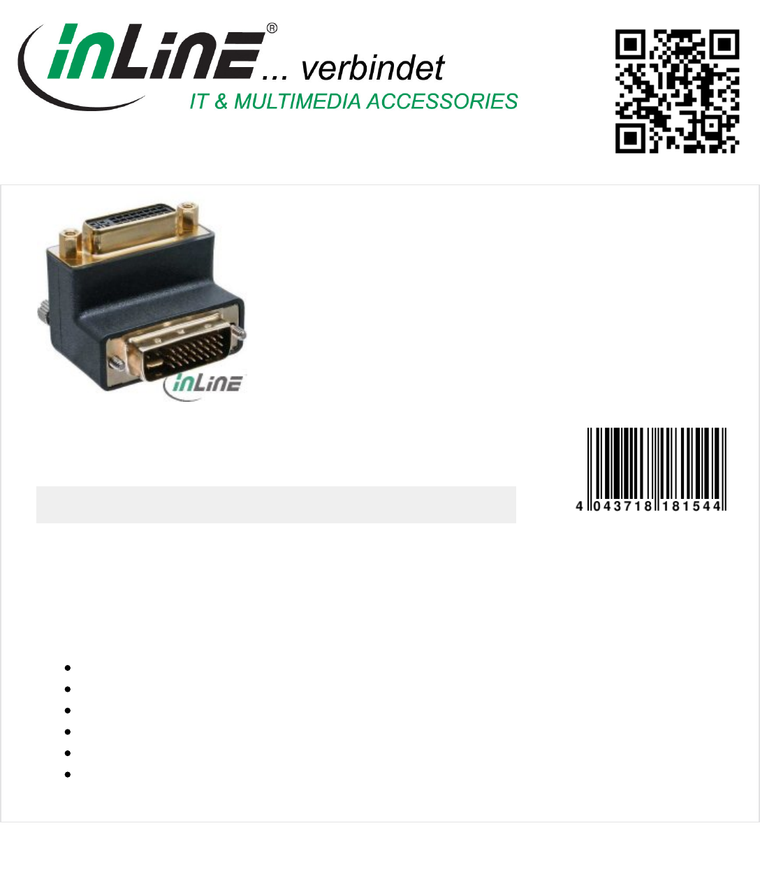 This adapter allows the connection of a DVI cable to the DVI-I connector of a monitor or