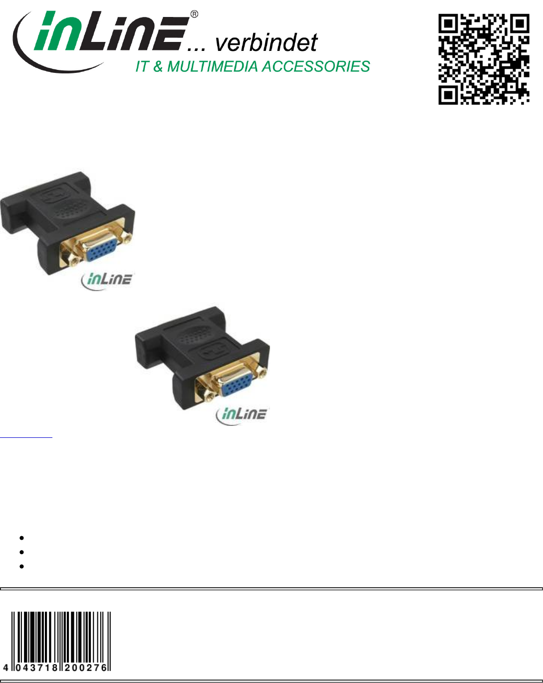 InLine® Adaptor, DB15HD F/F (VGA), gold plated