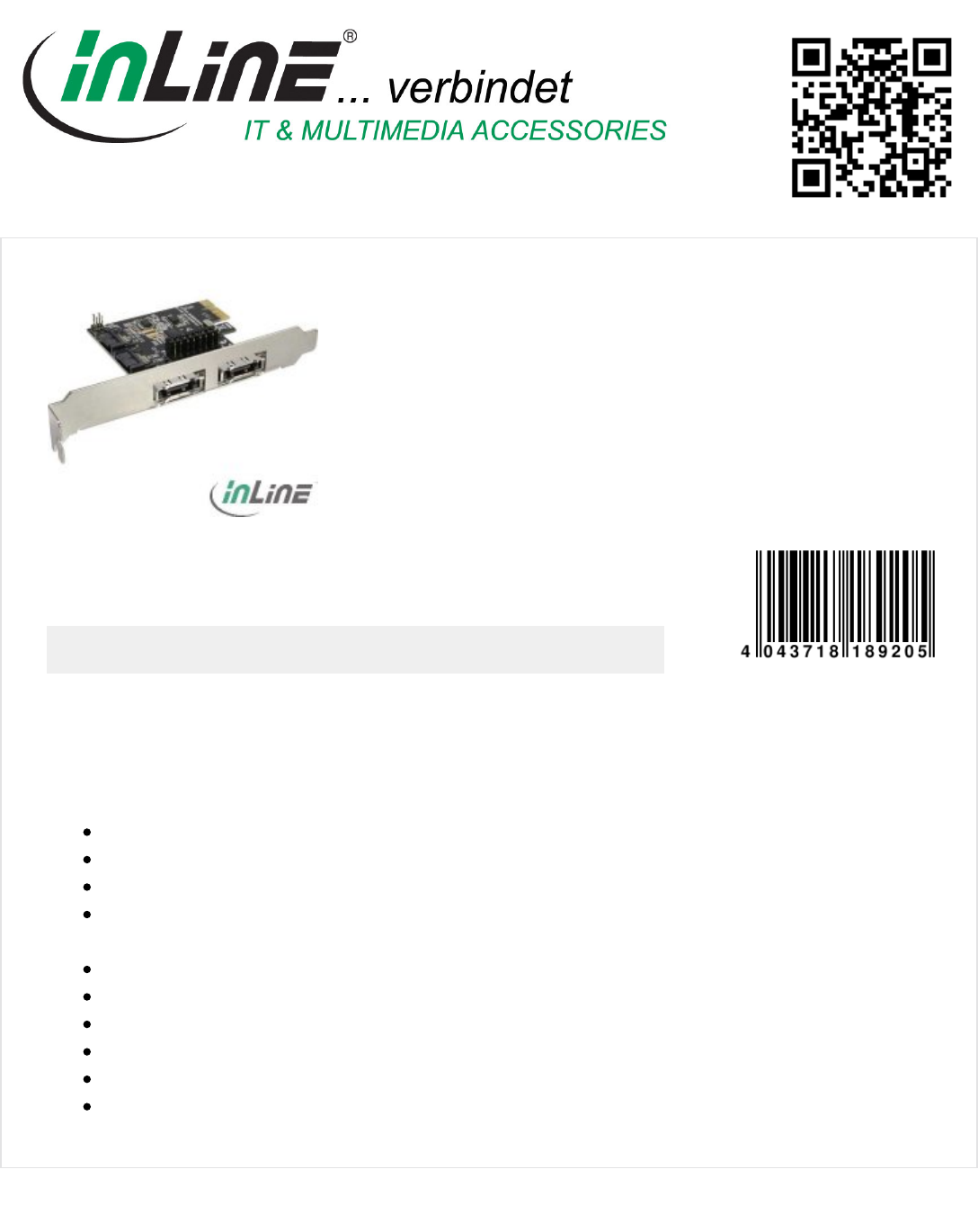 Interface card, 2+2-ports SATA 6Gb/s, PCIe. This card has 4 SATA ports, which can be
