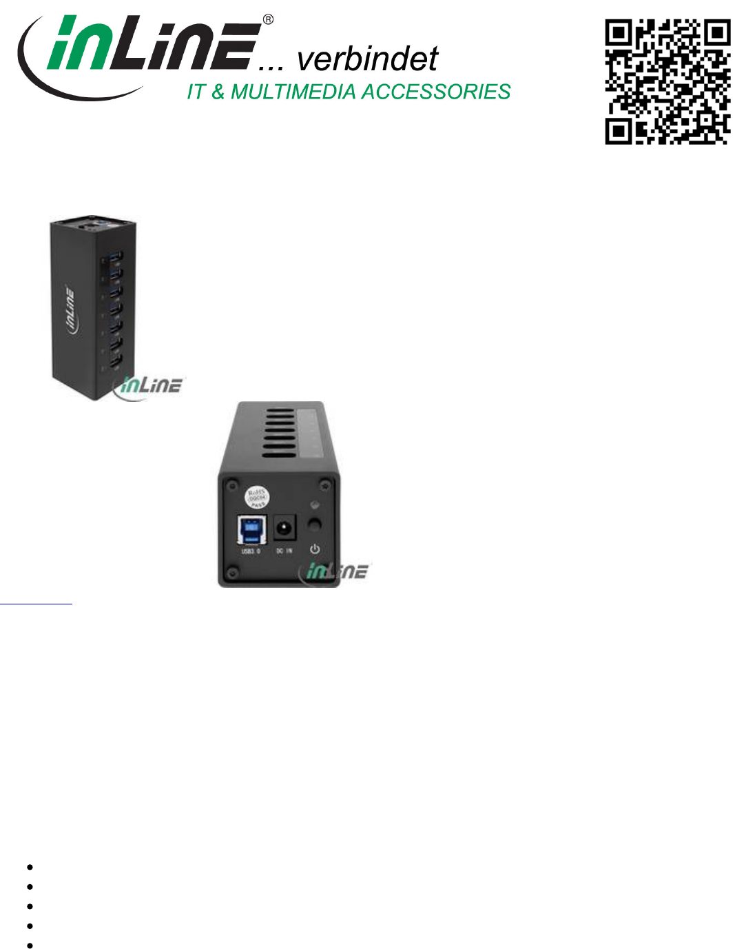 InLine ® USB 3.0 aluminum hub 7 port black, 3A Power Supply Active USB 3.0 aluminum hub with VIA