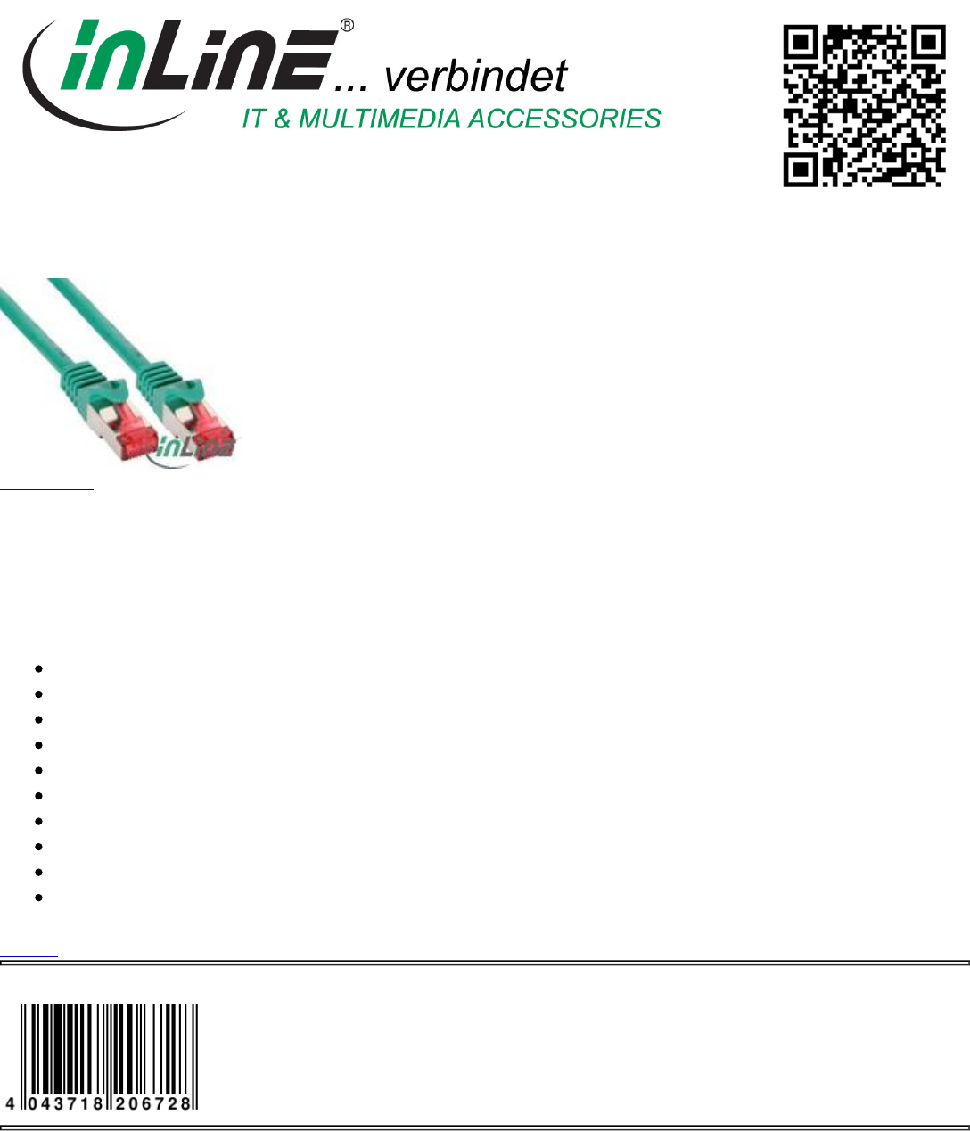 Category: Cable, Patch Cable Cat.6, Cat.6 S/FTP (Pimf)