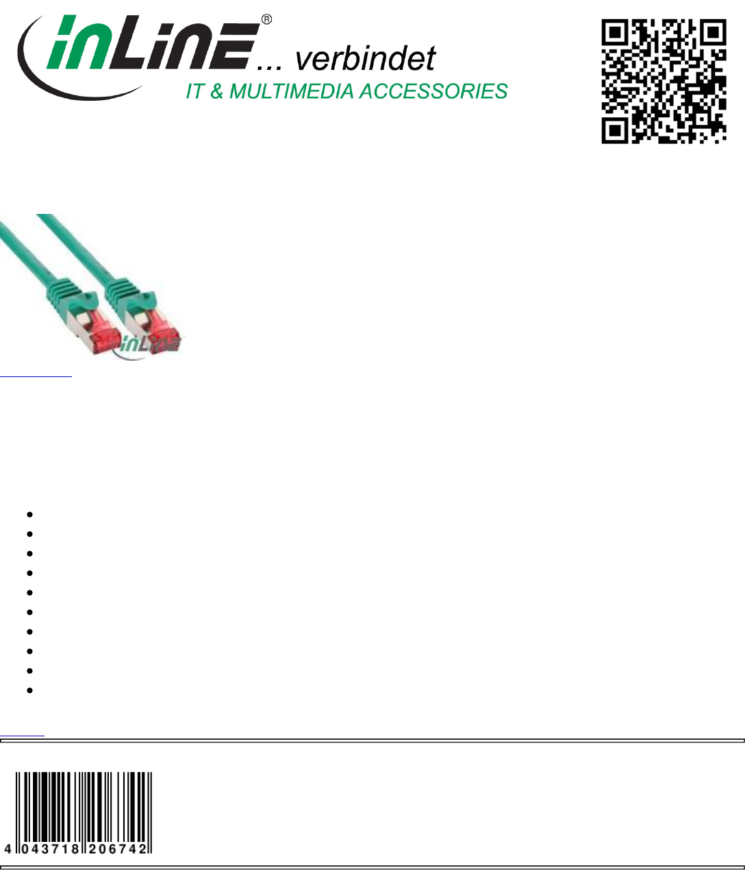 InLine® Patch cable S/FTP (PiMf), Cat.6, halogen free, green, 5m